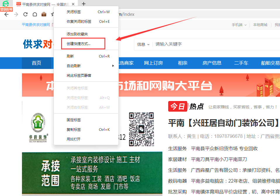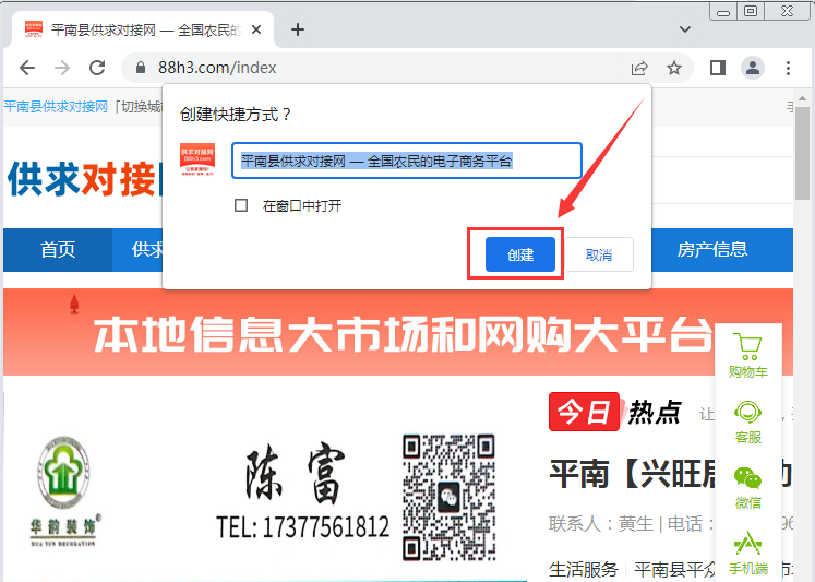 谷歌浏览器怎么把“供求对接网”网页保存到桌面?